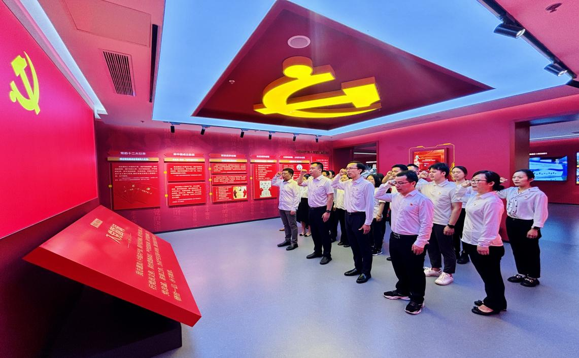参观结束后,在党委书记彭磊的带领下,全体党员面向党旗、举起右拳,重温了入党誓词。