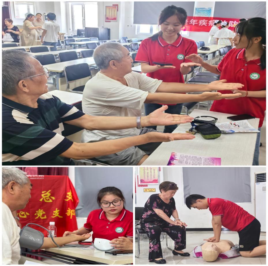 队员们与石河子大学附属医院联合在石河子市二十五社区为老一辈兵团人举办了健康科普与公益义诊活动。