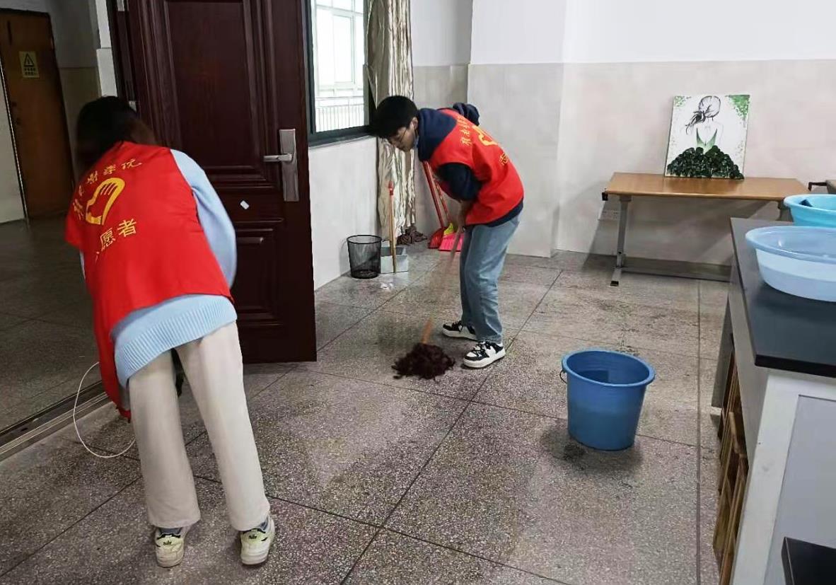 在辅导员的带领下,该院校园护绿志愿服务队拿着劳动工具对第五实验楼旁的荒地进行开垦与翻整,对荒地上的杂草进行一一清除。同时,在康复楼开展卫生大扫除,对大楼内的走廊、教室、卫生间、楼梯逐一进行清扫,对楼下的树木做了翻地、浇水。