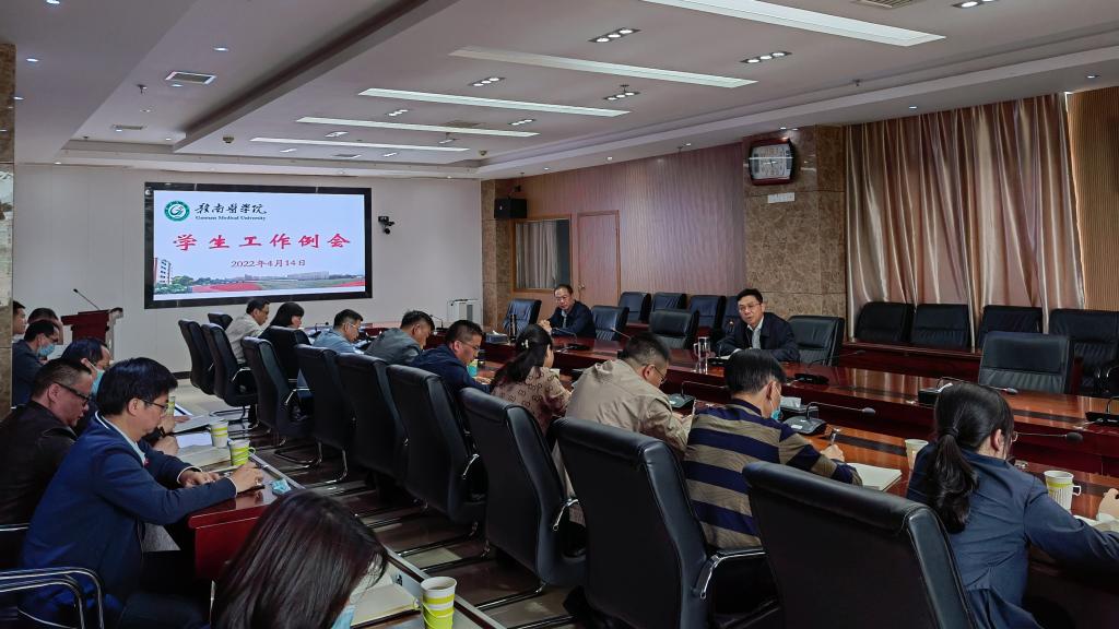 4月14日,我校在黄金校区召开学生工作例会。党委副书记曾泽鑫,党委委员、副校长叶军明出席会议。