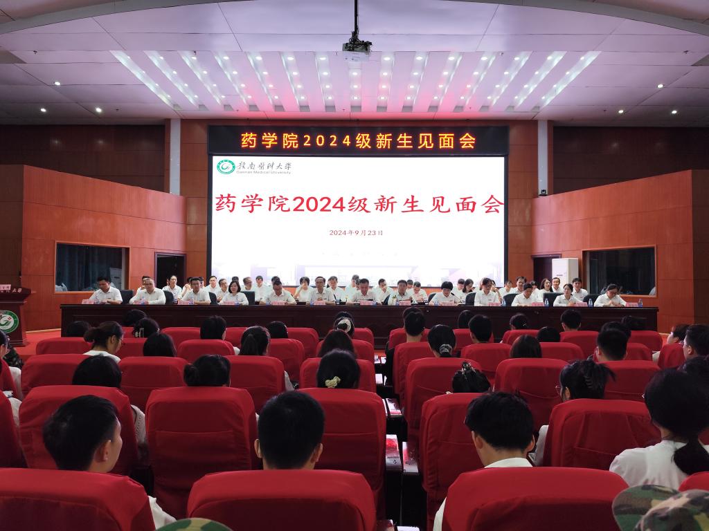 9月23日,药学院在黄金校区召开2024级新生见面会。该院领导班子、各教研室(实验室)负责人、导师代表、学工办辅导员、新生班主任及2024级全体新生参加会议。见面会由该院党委副书记罗丽萍主持。