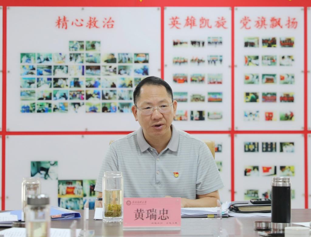 黄瑞忠要求,要以全局意识和战略思维抓好贯彻落实,推动学院教育教学工作高质量发展。要准确把握党中央、省委、学校党委关于学习贯彻全会精神的部署要求,结合学院实际找准工作切入点和着力点,围绕学校高质量发展三年行动计划,紧盯学校和学院近三年临床医学专业认证、本科教育教学水平审核评估、博士学位授权单位建设等重点工作任务,深化教育教学改革,持续加强专业内涵建设,切实用党的创新理论武装头脑,推动新时代教育教学理念入脑入心,促进临床教育教学理念和方法持续改进,不断提升教育教学质量和水平。